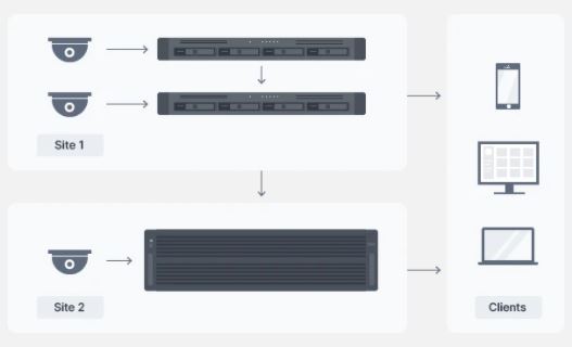 • 集中管理數(shù)百臺(tái)本地錄制服務(wù)器和數(shù)千臺(tái) IP 攝像機(jī)的分布式部署。