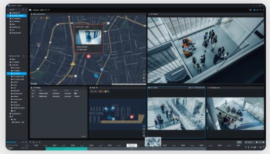 • 與 Google 地圖和 OpenStreetMap 整合,更輕松地監(jiān)控多地點(diǎn)部署,當(dāng)檢測到事件時(shí),可直接在多樓層、多點(diǎn)地圖上瀏覽影像,快速掌握各種監(jiān)控狀態(tài)。